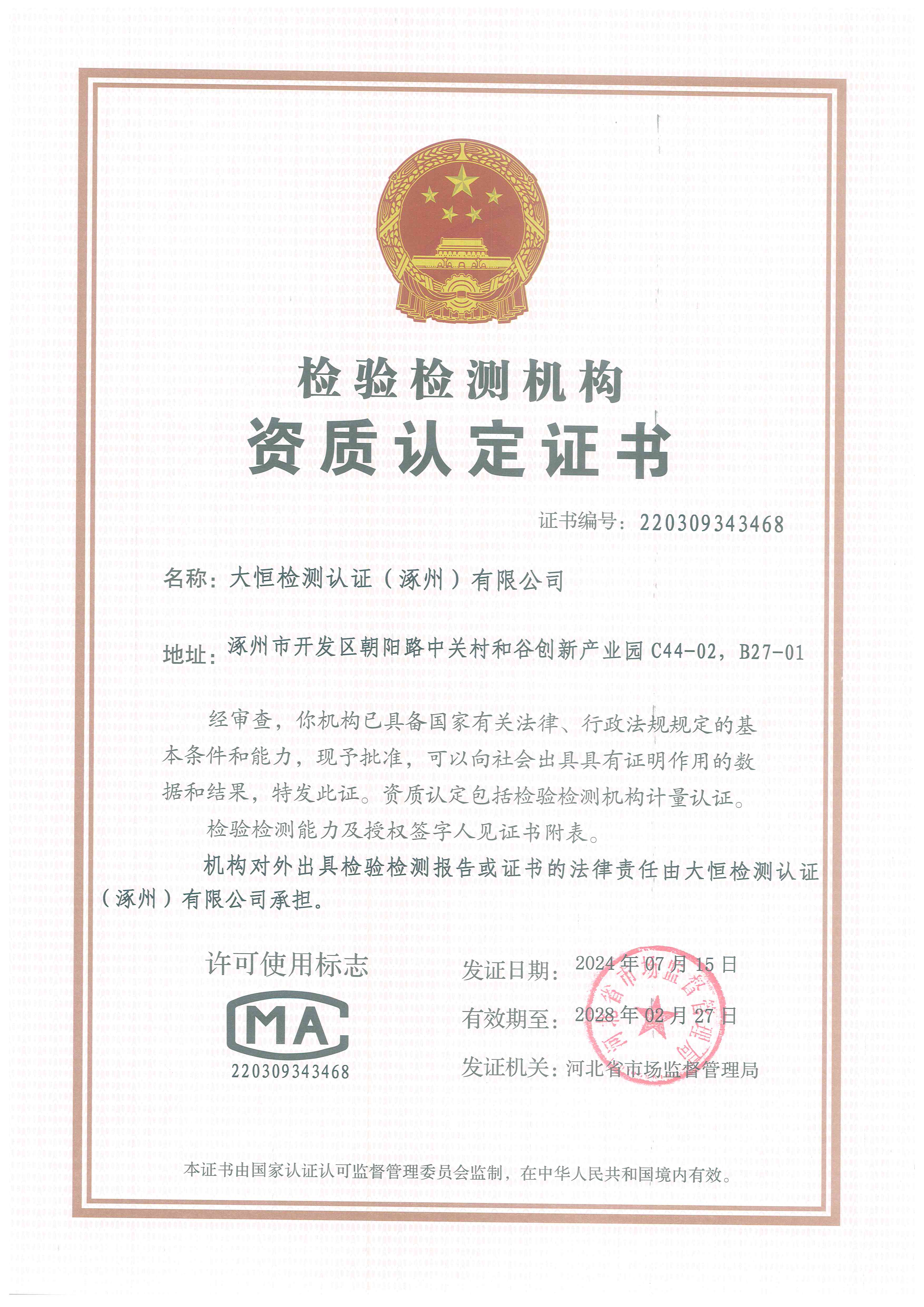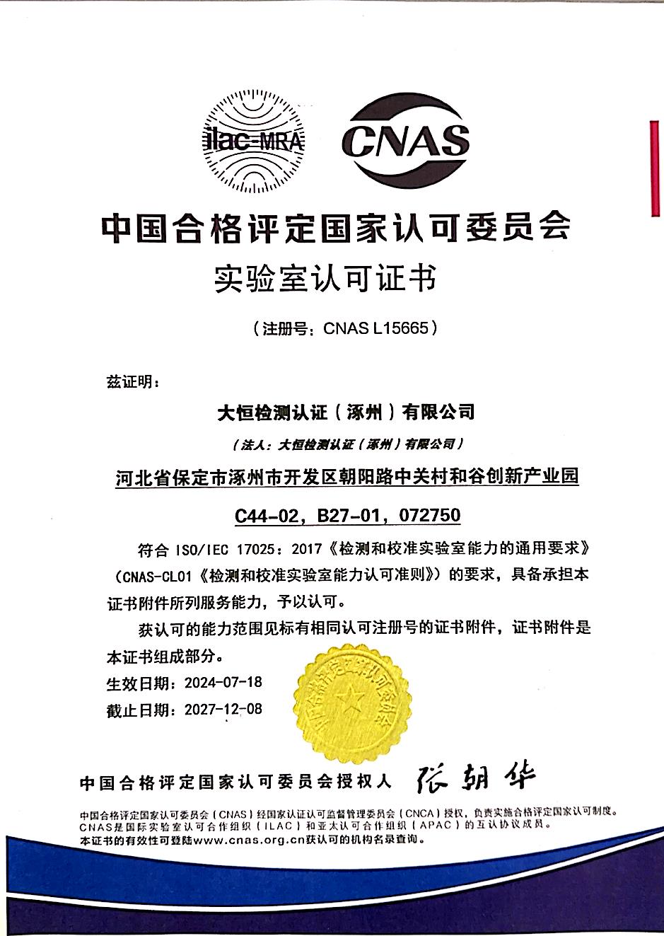 大恒检测认证(涿州)有限公司